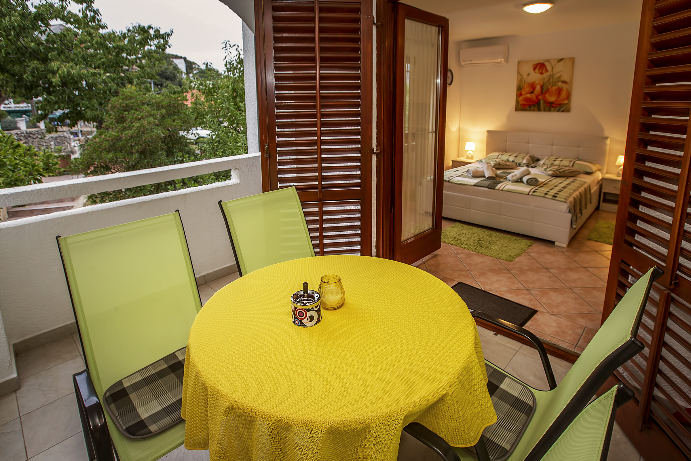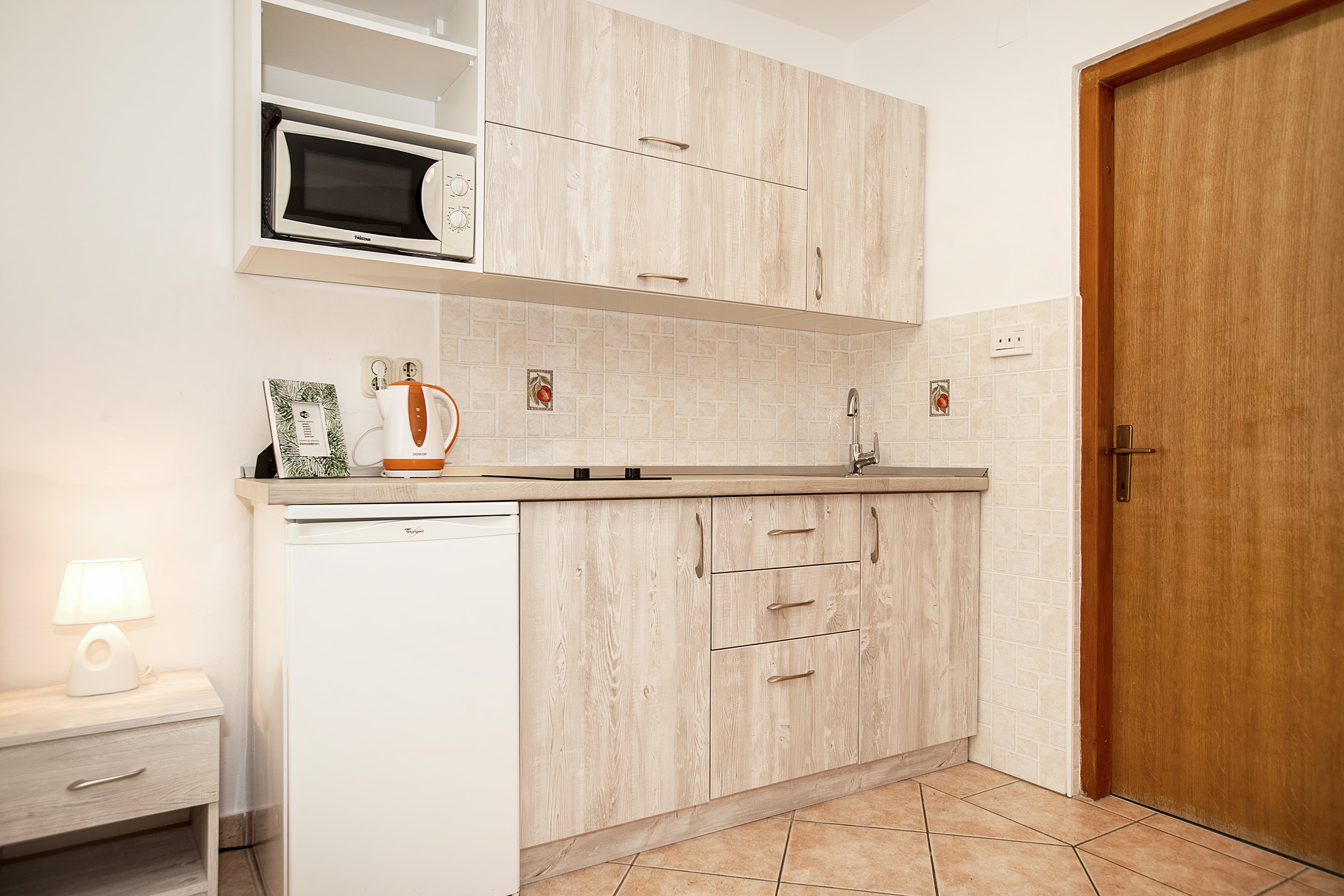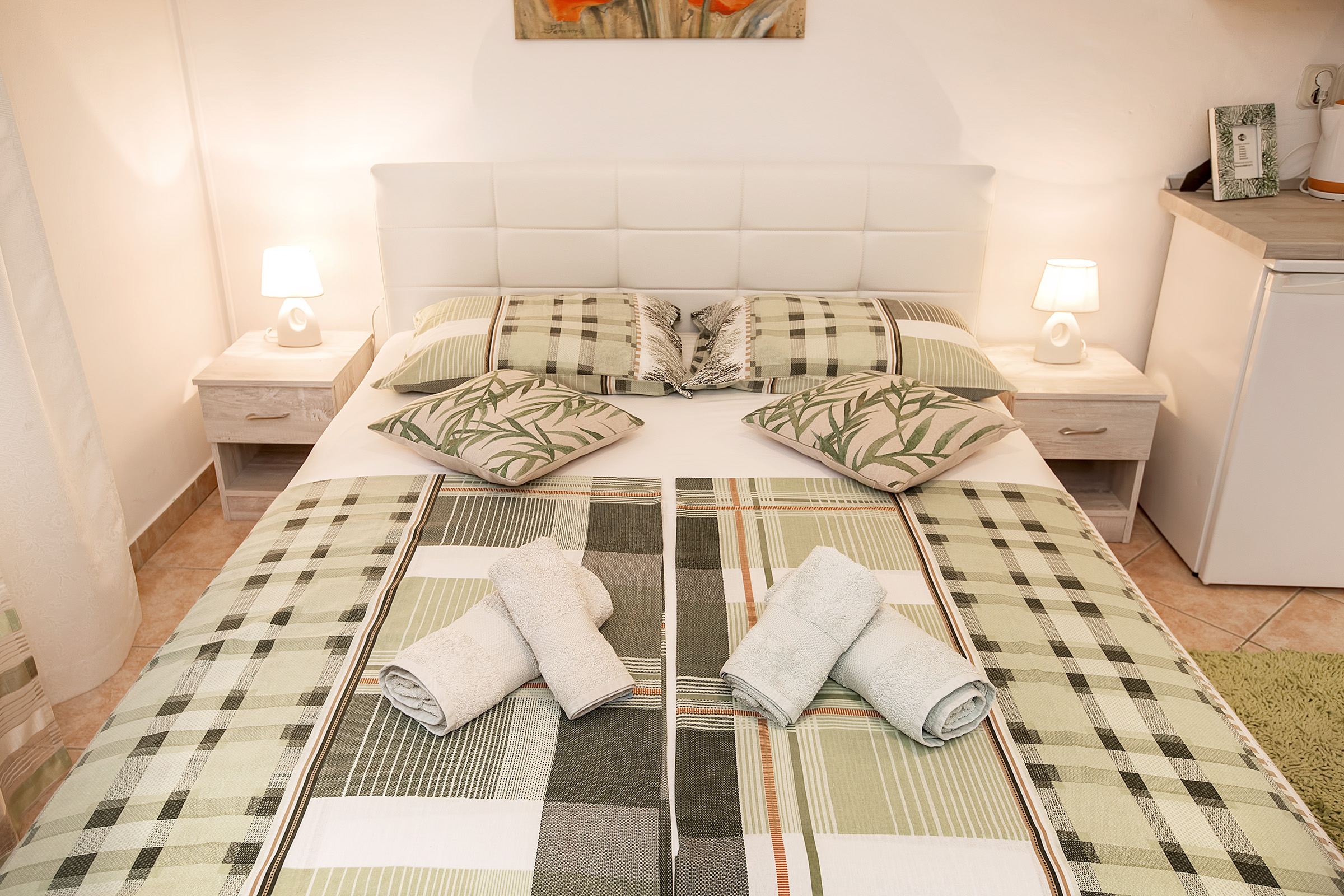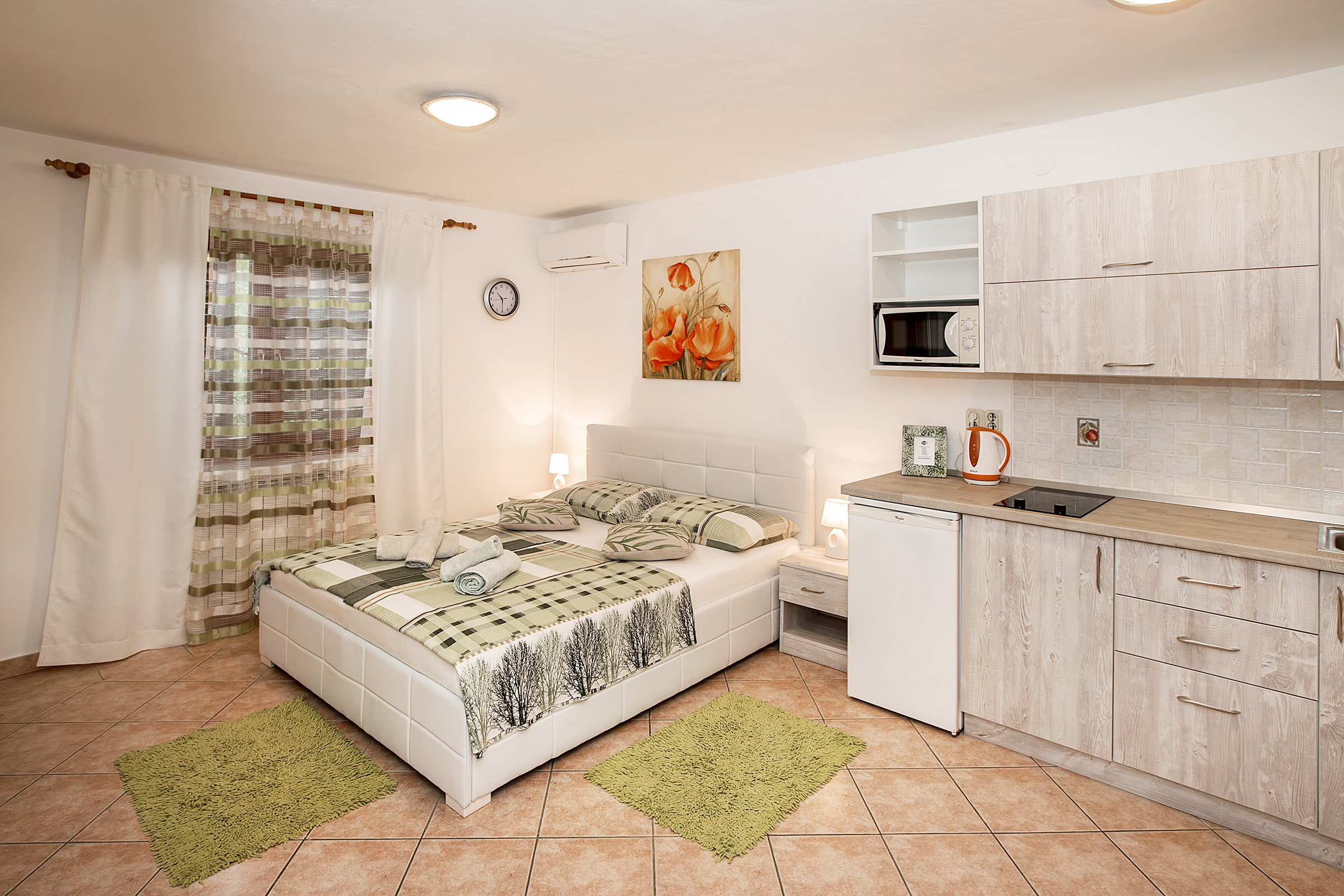 This studio apartment consists of a kitchen with a dining area, a double bed, 1 bathroom, and a balcony. It also has a secured parking space and access to the swimming pool and BBQ garden.